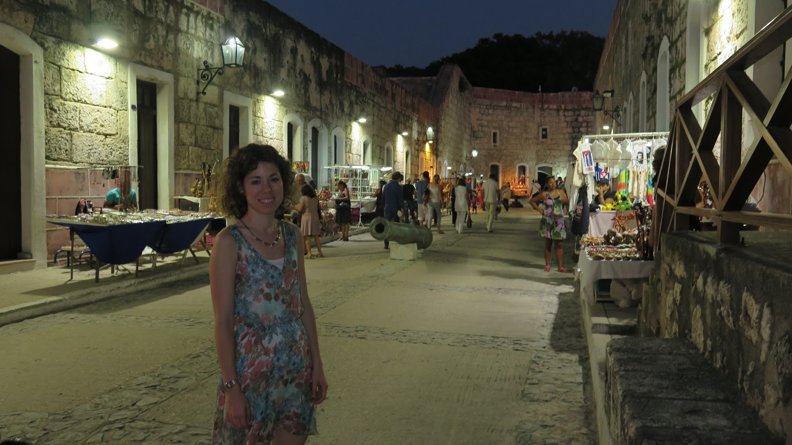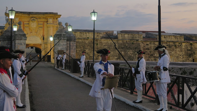 Tras la puesta de sol nos dirigimos, en aproximadamente 10 minutos caminando, a la Fortaleza de San Carlos de la Cabaña. Se trata una gran fortaleza construida en 1774, para proteger a La Habana de los ataques de enemigos o piratas. En la actualidad se puede visitar (entrada 6 CUC/pax; por 8 CUC incluye bebida y acceso al “balcón”, desde donde hay buenas vistas de la ceremonia del cañón). La fortaleza tiene un gran tamaño, por lo que podemos dedicar bastante tiempo a recorrerla, comiendo en alguno de sus restaurantes o visitando sus museos. Pero, sin duda, el evento más famoso en la fortaleza es el del “cañonazo”, que se celebra todos los días a las 21:00 horas. En esta ceremonia, actores vestidos con trajes del siglo XVIII representan el disparo de un cañón sobre el puerto de La Habana. Si bien la ceremonia no es nada del otro mundo, las vistas de la ciudad desde “el balcón” son notables. Además, comprando dicha entrada, nos evitamos las aglomeraciones de turistas que pretenden contemplar la ceremonia a pocos metros de distancia.