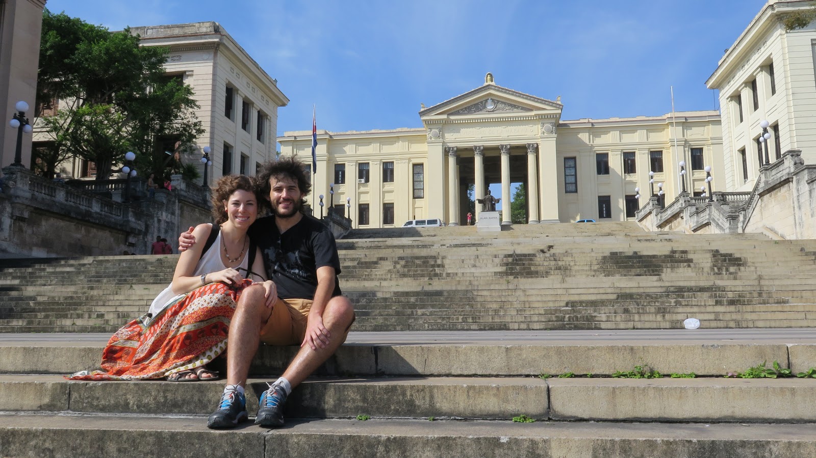 Dormimos en el barrio de Vedado, a pocos metros de la Universidad, uno de los puntos a visitar en La Habana. Es una de las universidades más antiguas de toda América, fundada en 1728. En ella estudian más de 60000 alumnos. La soberbia escalinata que da acceso a los edificios de estilo neoclásico es realmente fotogénica. Podemos pasear por el interior de algunos de los edificios donde los alumnos reales se juntan con algunos timadores caza-viajeros. Se presentan como estudiantes de historia, te muestran y explican durante un buen rato la universidad y luego te convencen para ir a un bar cercano en el que, supuestamente, Fidel Castro celebró la Revolución. Allí sirven bebidas insípidas a precio extremadamente caro, así que no caigáis en la palabrería de esa gente y no hagáis caso, en general, a nadie que os venga con buenas palabras en la Universidad (ya caímos nosotros, con eso basta 😅 ).