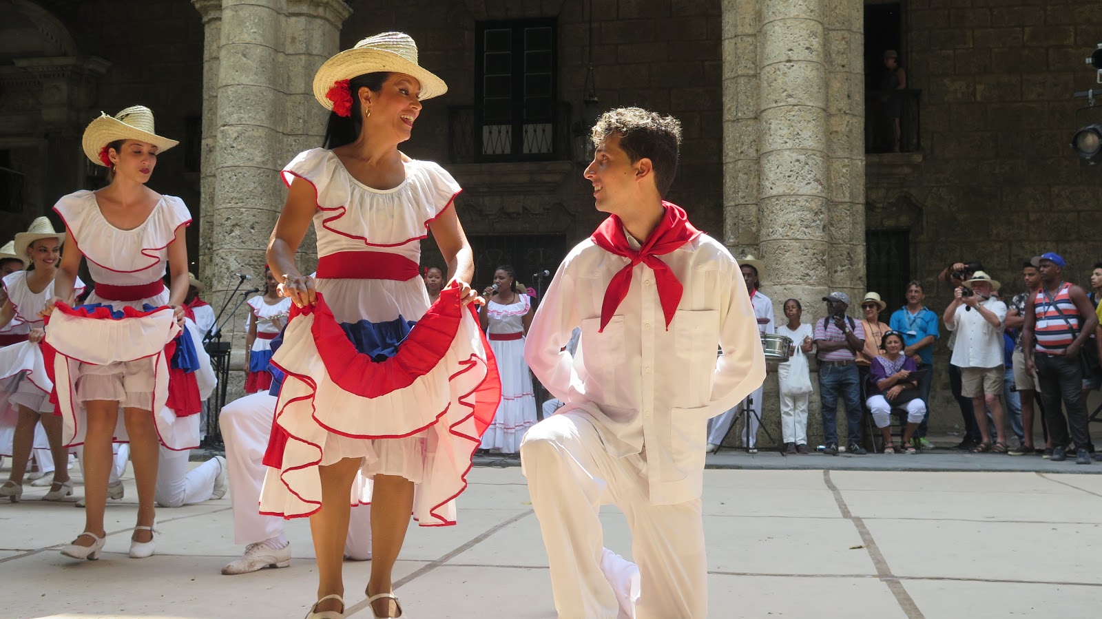 Continuamos paseando por las bonitas calles de San Ignacio y calle Obispo hasta llegar a otro de los puntos de interés, la Plaza de Armas. Se trata de la plaza más antigua de La Habana, y actualmente es uno de los centros de reunión de los lugareños. Mientras los niños juegan, los jóvenes buscan acceso a internet sentados en las aceras y los ancianos reposan en alguno de los bancos de la plaza. Nosotros pasamos un buen rato disfrutando de un espectáculo folclórico de un grupo de Camagüey, quienes realizan bailes muy animados ataviados con unos coloridos trajes.