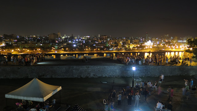 Contemplando la ceremonia del cañonazo, con vistas nocturnas de La Habana.