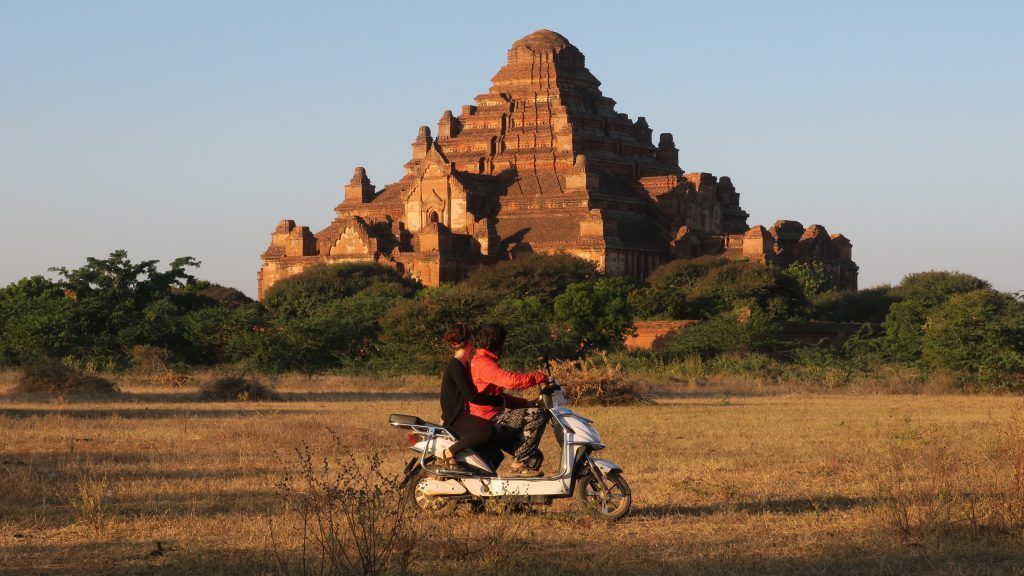 – Moto eléctrica (e-bike): para nosotros, la opción ideal. Las alquilan en la mayor parte de los alojamientos de Bagan. Por poco más de 4 € se pueden utilizar todo el día, permitiendo llevar a dos personas. Muy recomendable.
