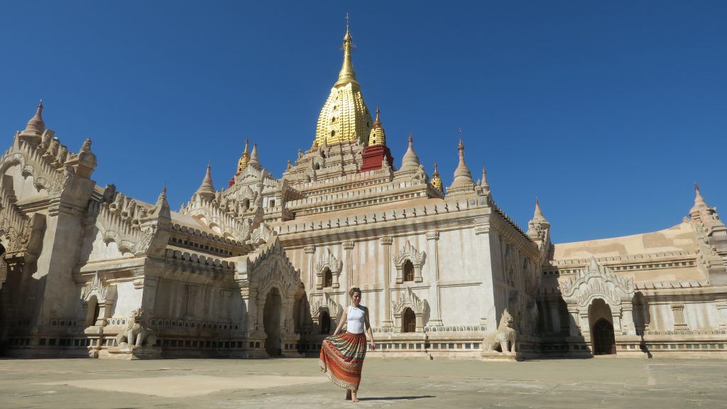 – Templo Ananda: probablemente sea el edificio más importante, conocido e impresionante de Bagan. Fue construido en el año 1105, durante el reinado del Rey Kyanzittha. Se denomina Ananda en honor del primo de Buda. La construcción de este templo está plagada de leyendas, diciéndose que los monjes que idearon y construyeron este magnífico templo fueron asesinados por Kyanzittha para asegurarse que nadie pudiera erigir uno similar. En su interior destacan cuatro grandes imágenes de Buda, algunas placas labradas en terracota y abundantes pinturas.