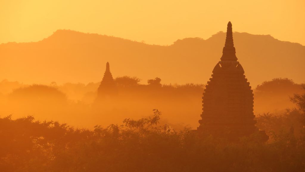 La antigua ciudad de Bagan es, sin lugar a dudas, la gran joya de un viaje a Myanmar. Los más de cuatro mil templos construidos en esta antigua capital de Birmania, de los que todavía persisten en pie 3822, son una espectacular muestra arquitectónica, artística y, por qué no, paisajística en el centro de Myanmar. No en vano, los templos, pagodas y estupas de Bagan se mimetizan con el paisaje de las llanuras próximas al Río Irrawaddy y constituyen una inolvidable estampa con las luces del amanecer y el atardecer.