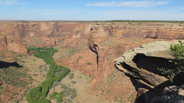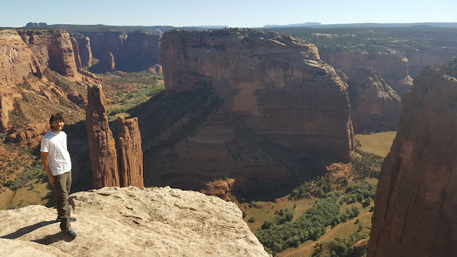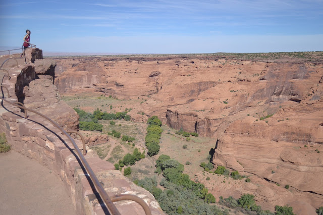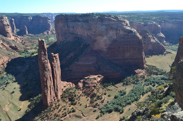 Nos detenemos en todos los miradores, pudiendo contemplar los majestuosos paisajes que nos ofrece el Canyon de Chelly. El mirador más alejado (el Spider Rock Overlook) es el que nos permite contemplar de cerca la esbelta Spider Rock, una delgada y vertical roca de casi 250 metros de altura.