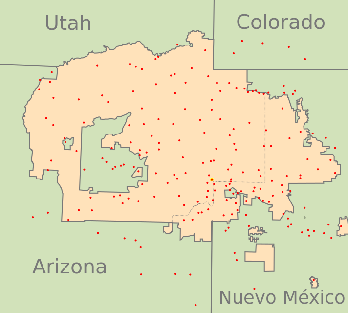 Mapa de la actual Nación Navajo. Fuente: wikipedia