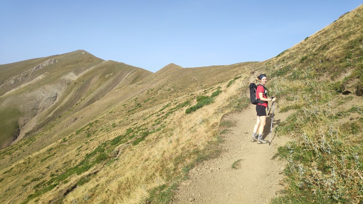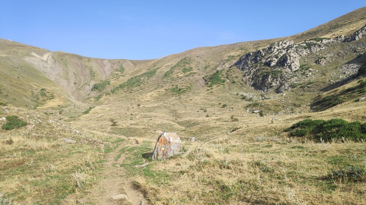 Reemprendemos la marcha virando hacia el norte, por un cordal de lomas herbosas surcadas por diversos senderos que se dirigen en línea recta hacia la cima.
