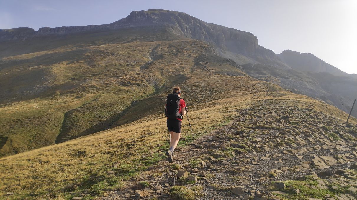 Toca descender, por el mismo camino que hemos venido. Lo hacemos a ritmo tranquilo pero sin pausa, prestando especial atención en el tramo con más piedra suelta. Pequeña parada en el Collado de lo Foratón y, desde allí, el agradable tramo de descenso más suave que nos lleva, de vuelta, al Refugio de Lizara.