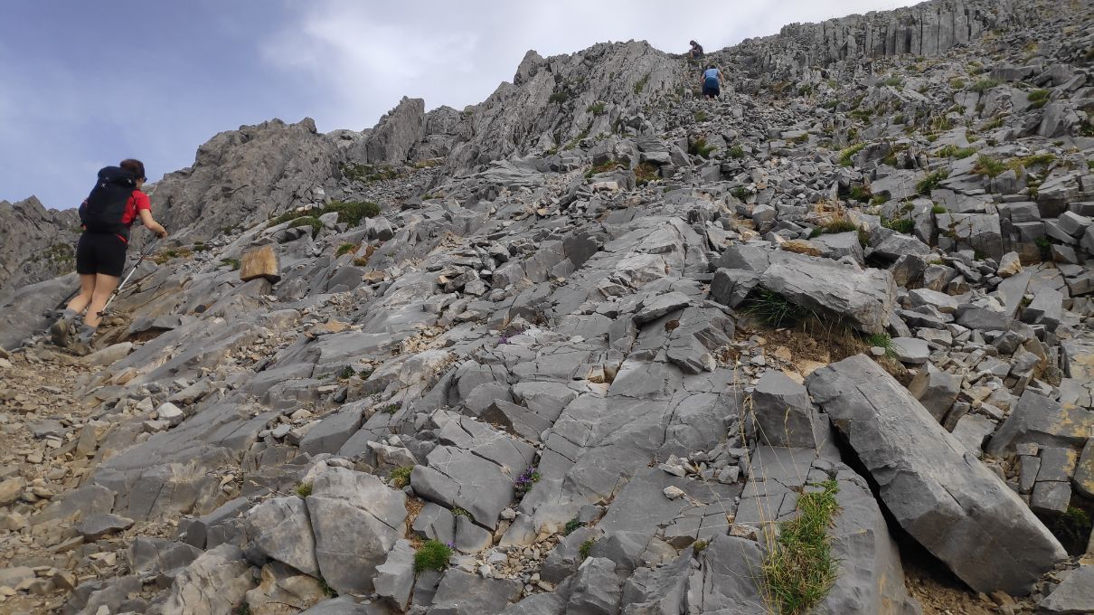 – Precaución en el tramo más pendiente de la pala final, puesto que hay algún tramo con piedras sueltas que pueden caer a los montañeros que caminan más abajo.