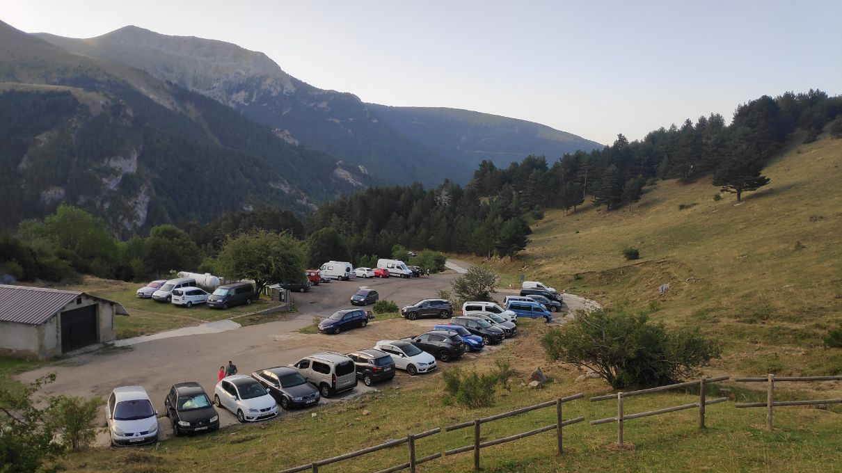 Justo antes del refugio hay un aparcamiento amplio, en el que caben unas pocas decenas de vehículos.
