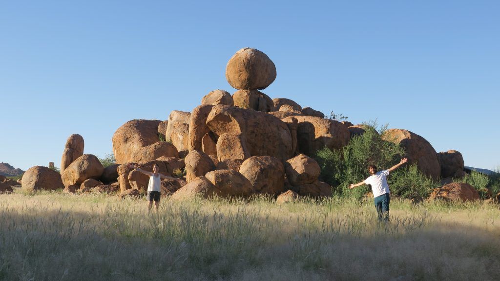 Comenzamos a surcar las pistas arenosas de Namibia, parando enseguida a tomar algunas fotos con las curiosísimas piedras que realizan equilibrios al lado de la carretera. ¡Vaya paisajes nos regala Namibia!