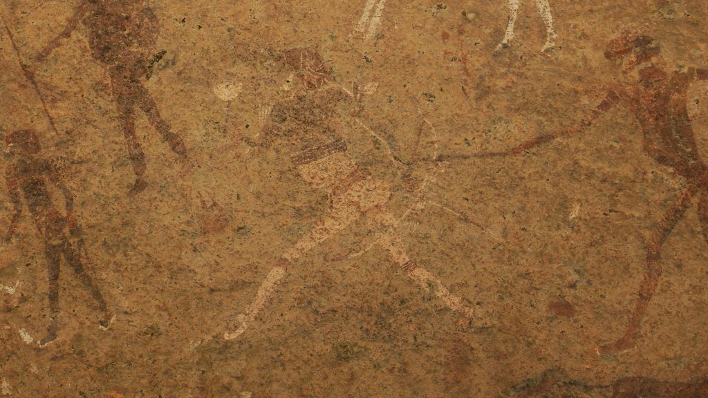 La figura muestra a un varón con un arco y flechas, de pelo liso y claro, con tez blanca y que sujeta un objeto con su otra mano. Dicho objeto, según algunas teorías, es un huevo de avestruz repleto de veneno en el que untar las flechas para posteriormente cazar.