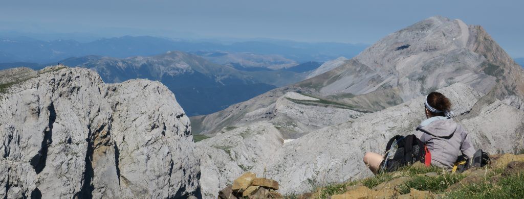 Descendiendo del Vértice de Anayet, con las imponentes siluetas del Anayet y el Midi d’Ossau al fondo. Tras un invierno