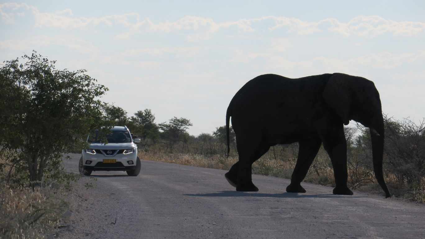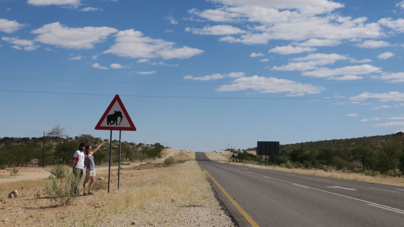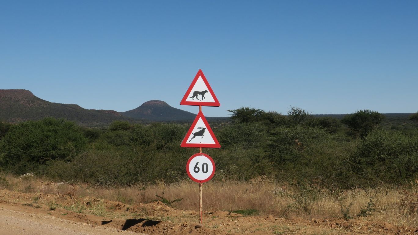 En Etosha hay que extremar las precuaciones, puesto que la fauna puede atravesar la carretera.