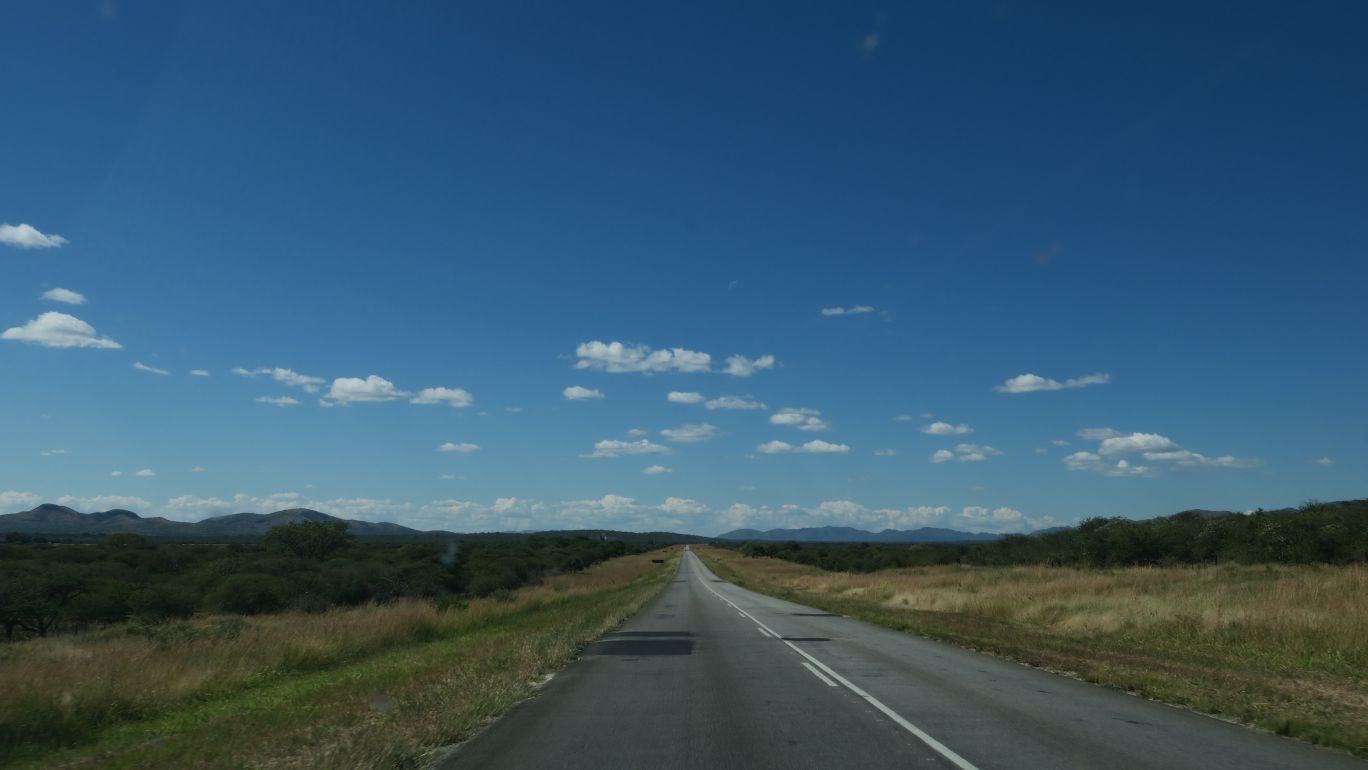 Conduciendo por una carretera en Namibia, rumbo a Etosha.