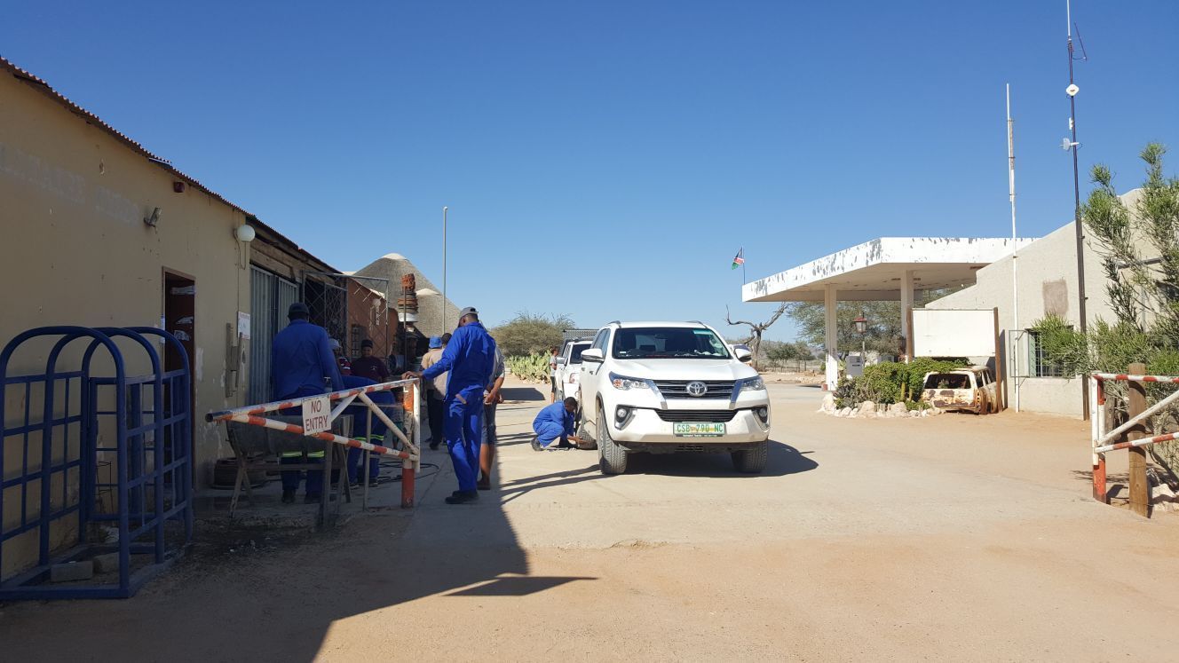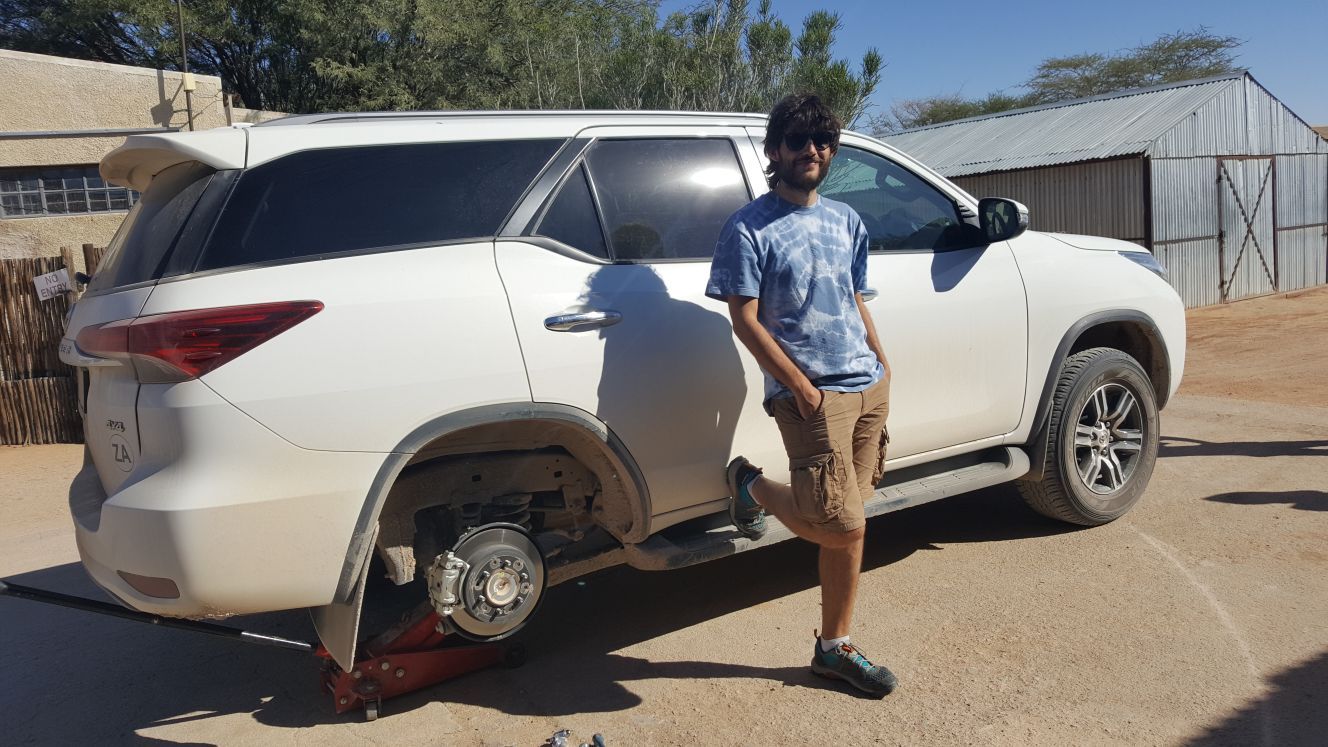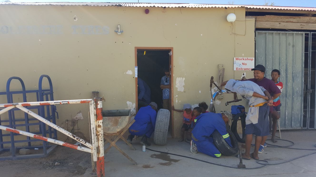 – Ruedas de repuesto: los pinchazos en Namibia están a la orden del día, por lo que nuestro coche de alquiler debe llevar, al menos, una rueda de repuesto. En nuestro caso pinchamos dos veces (una en Etosha y otra en Solitaire, cerca de Sesriem); por fortuna, en ambas ocasiones encontramos enseguida un taller donde nos repararon la rueda. Los precios de estos talleres son económicos. Es aconsejable, no obstante, al coger el coche de alquiler preguntar cómo cambiar la rueda, por si el pinchazo acontece en algún lugar completamente aislado. Nosotros encontramos un vídeo en internet en el que se explicaba el procedimiento a seguir en nuestro modelo de coche; lo descargamos y lo llevábamos en el móvil, por si acaso.