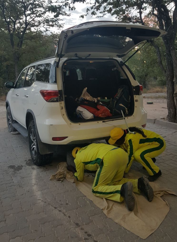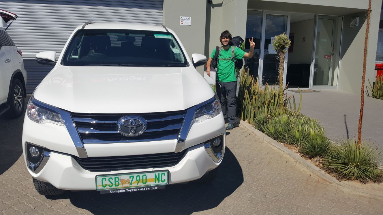 Primera toma de contacto con nuestro coche, en el aeropuerto de Windhoek.