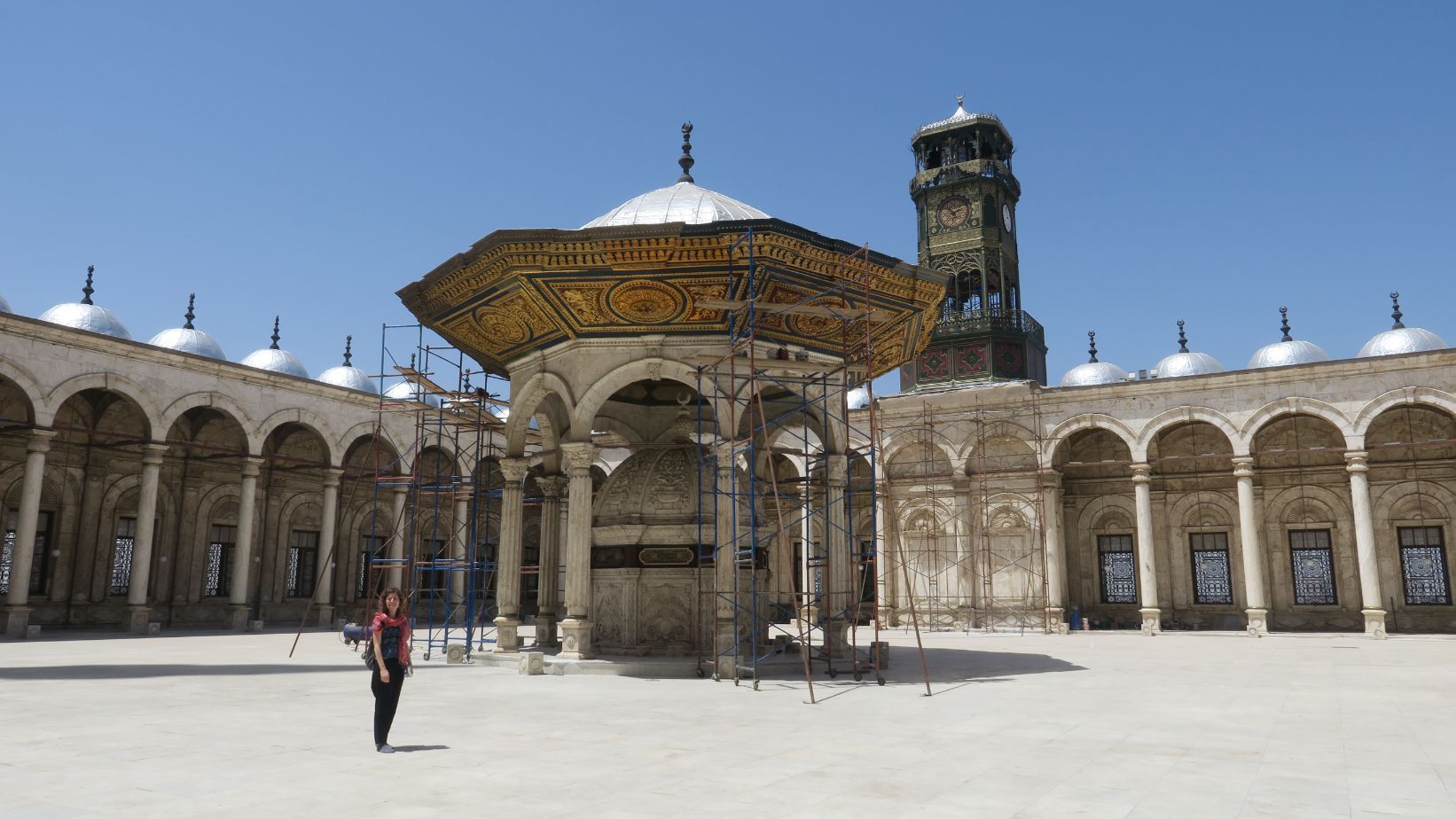 La primera visita es a la Mezquita de Muhammad Ali (mezquita de alabastro). Entramos, descalzos, a visitar el enorme templo casi vacío. Nos hacen salir temprano puesto que va a comenzar la oración, por lo que decidimos regresar más tarde. En el patio destaca el reloj que intercambiaron los egipcios con los franceses por el célebre Obelisco de la Plaza de la Concordia. El reloj, según parece, nunca funcionó.