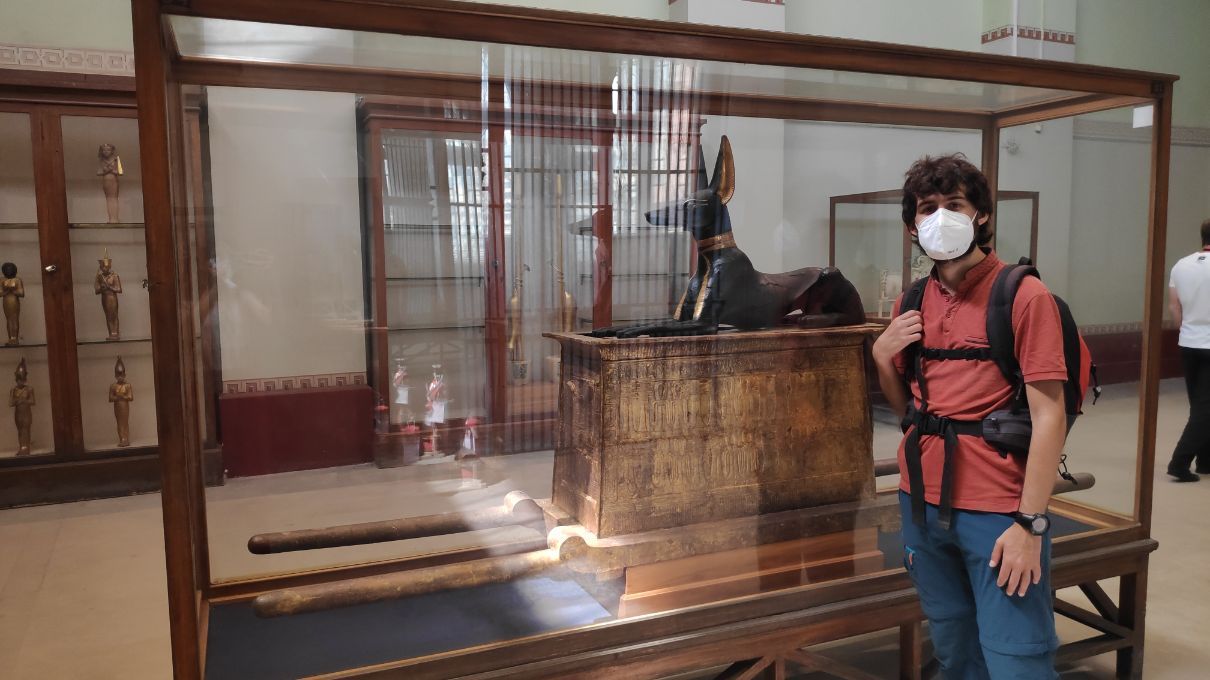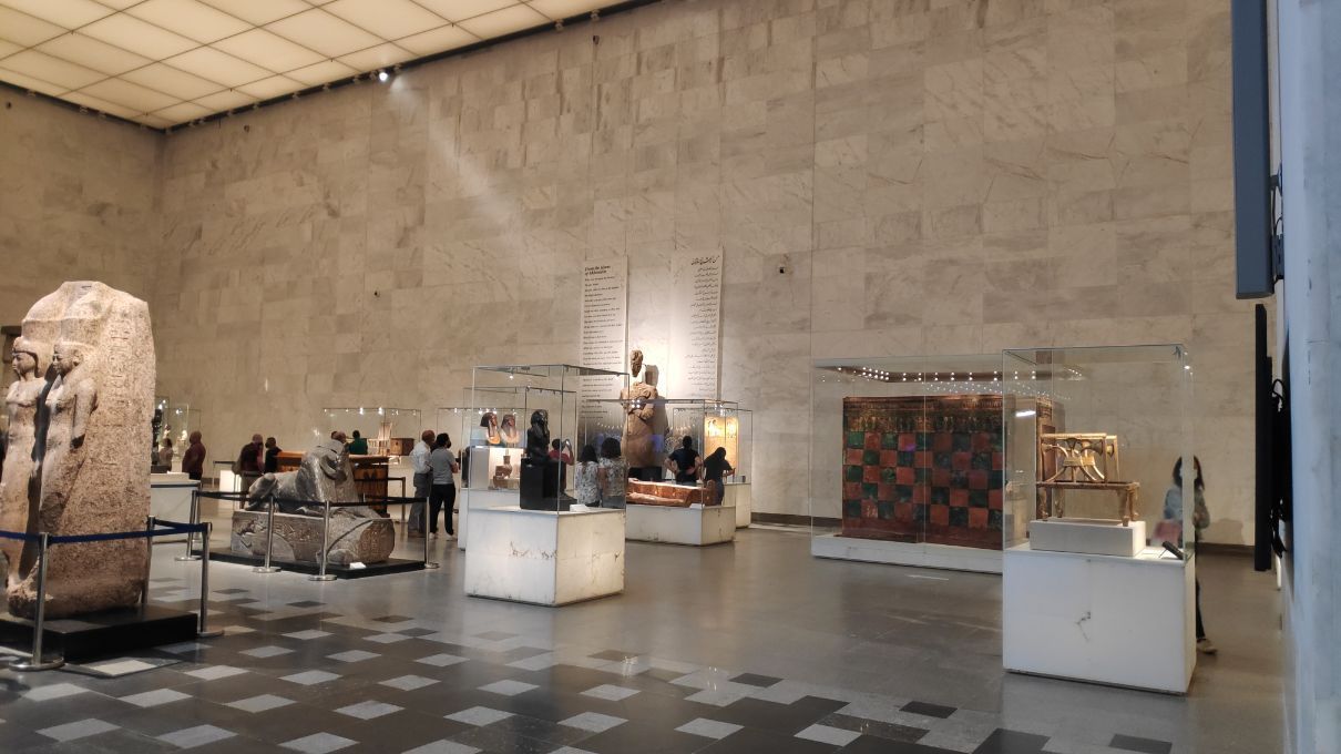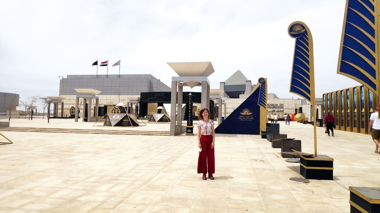 Tomamos un Uber para llegar hasta el Museo nacional de la Civilización Egipcia, de moda puesto que unos días antes ha sido el destino final de las momias de 22 faraones del Antiguo Egipto. Pagamos la entrada y, tras los controles de seguridad, nos dicen que no se pueden entrar mochilas (ni siquiera la funda de la cámara de fotos). Aquí parece que da más tranquilidad dejar las pertenencias, puesto que es un museo nuevo y está todo bien organizado.