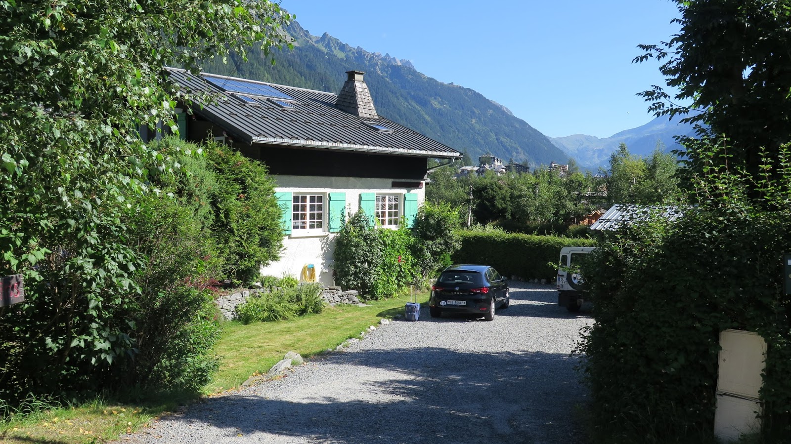 El Chalet des Pelerins, tal y como su nombre indica, es un pequeño chalet en el que hay 2 plantas con varias habitaciones y zona común (comedor, salón, terraza, etc…). Está situado a unos 10 minutos andando del centro de Chamonix. Asomándonos a la ventana, vemos las cimas del Mont Blanc, Aiguille du Midi y el enorme Glacier des Bossons. Nuestra habitación es pequeña pero con una cama gigante y muy cómoda. Tenemos lavabo y ducha en la habitación, pero el WC está fuera (es común para otras habitaciones). Todo muy limpio y ordenado. Dispone de parking privado gratis.
