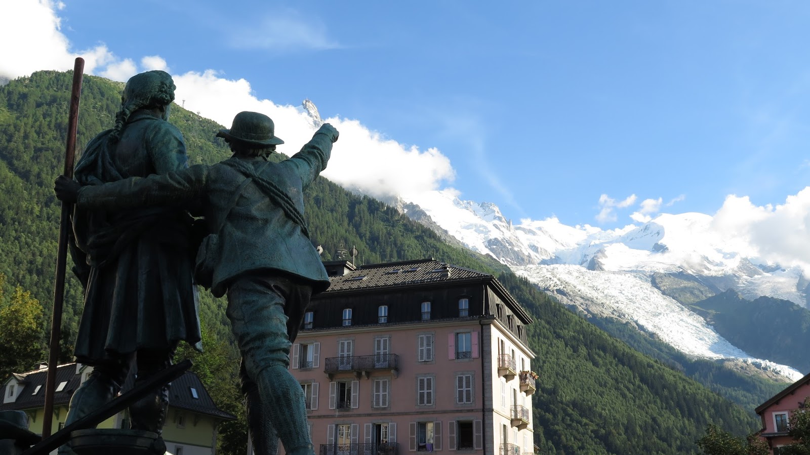 Una vez llegamos a Chamonix paseamos un poco por sus muy animadas calles, llenas de turistas y montañeros. Resulta entretenido entrar a las tiendas de material de montaña, ver la estatua en honor a Horace-Bénédict de Saussure y Jacques Balmat (pioneros en la conquista del Mont Blanc) y pasear por el pueblo rodeado de glaciares y nevadas montañas.