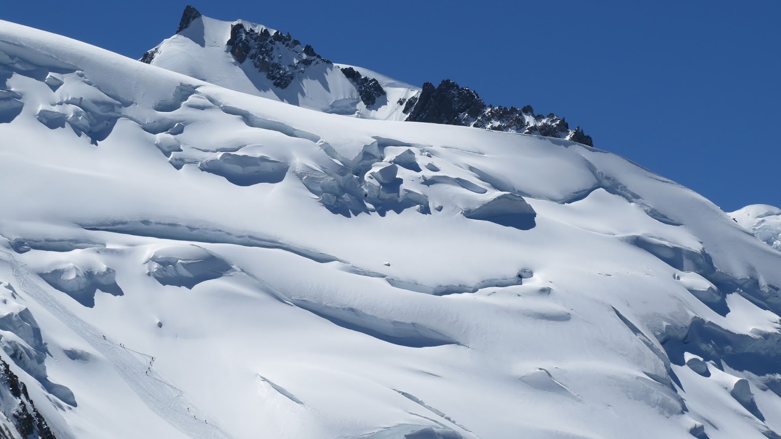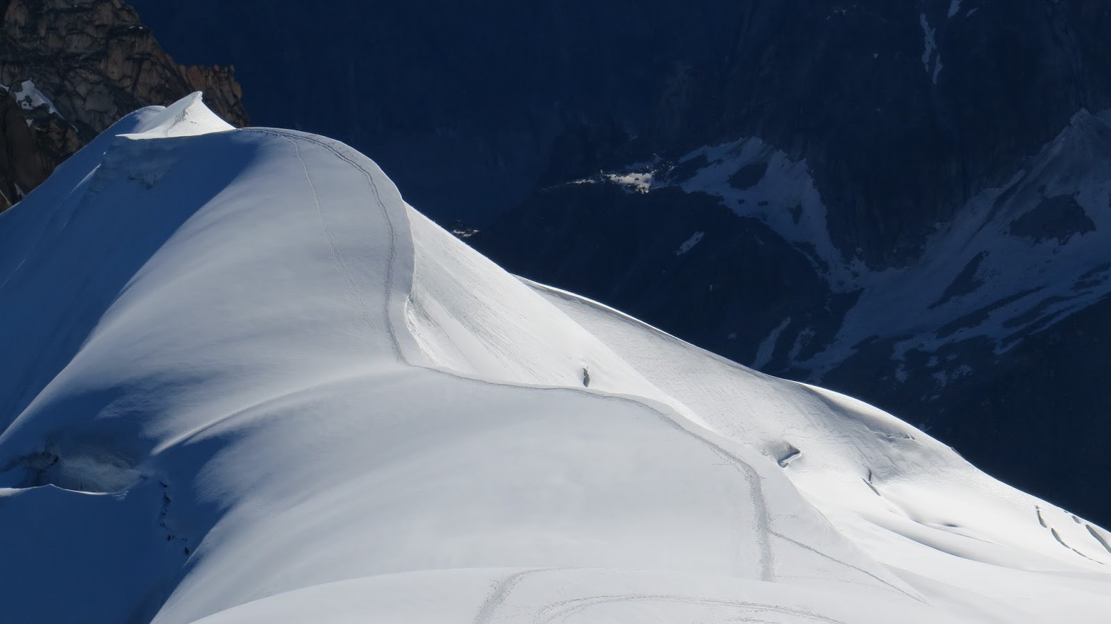 Impresionantes cornisas en las paredes del Mont Blanc du Tacul.