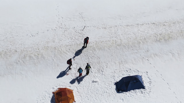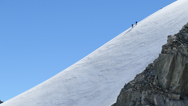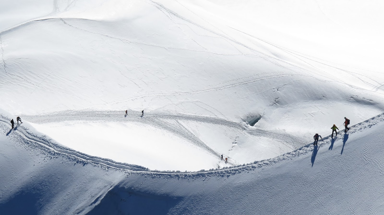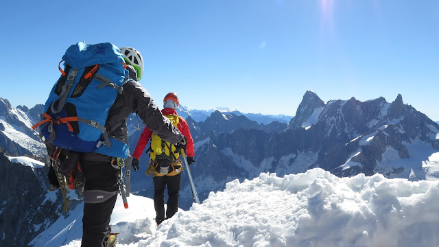 Alpinistas iniciando la ruta desde la Aiguille du Midi.