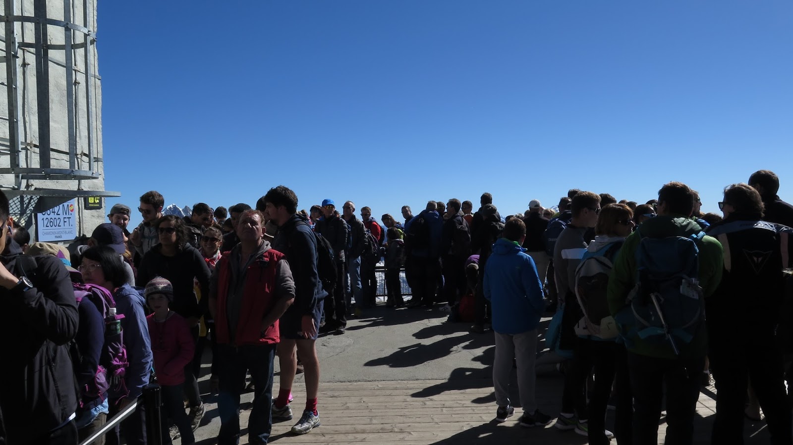 – ¿El ascensor para subir a las terrazas de Aiguille du Midi es de pago? ¿Se hace mucha cola?