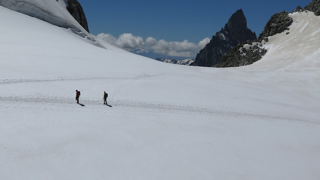 A lo lejos reconocemos las siluetas del Grand Combin y del Cervino/Matterhorn.