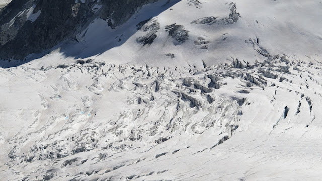 Regresamos con las mismas cabinas a la Aiguille du Midi; en este trayecto las vistas vuelven a ser notables.
