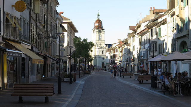 | Calle comercial en Morges, tranquila a estas horas de la tarde. |