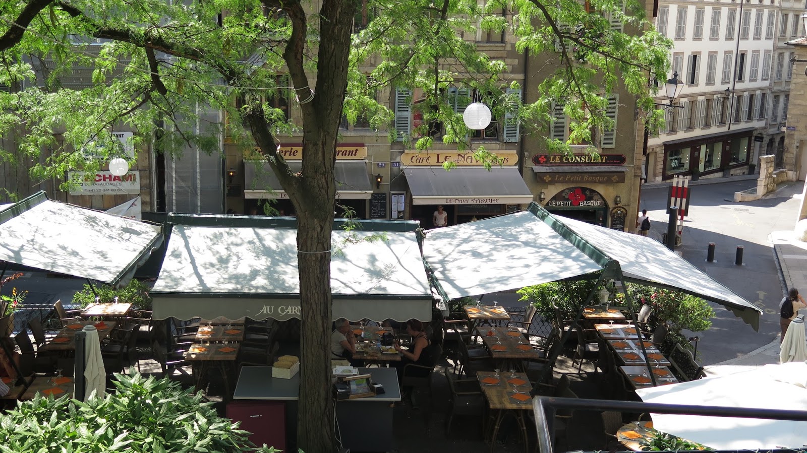 | Terrazas en la plaza Bourg du Four. |