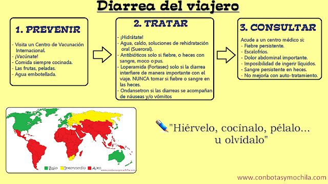 Os dejamos un pequeño esquema con los puntos más importantes sobre la prevención y el tratamiento; si lo deseáis, podéis imprimirlo y llevarlo en vuestros viajes. ¡Nunca viene mal algún consejillo!