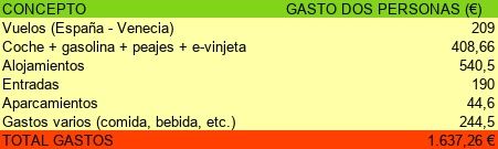 Así, sumando todo, nuestro presupuesto para un viaje de una semana a Eslovenia por libre, para dos personas, fue de 1637,26€.