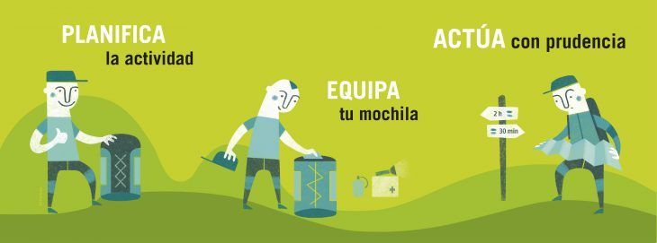 Planifica, equipa, actúa. Con estas tres palabras se resumen a la perfección las principales recomendaciones de Montaña Segura para quienes se disponen a realizar actividades en el medio natural. Y, aunque llevan desde 2012 (¡y antes!) dándonos consejos para nuestras excursiones, trabajando con una red de informadores voluntarios y divulgando por todos los medios numerosos materiales informativos, nunca está de más recordar los tres pilares fundamentales que deberíamos tener en cuenta en cualquier salida a la montaña: