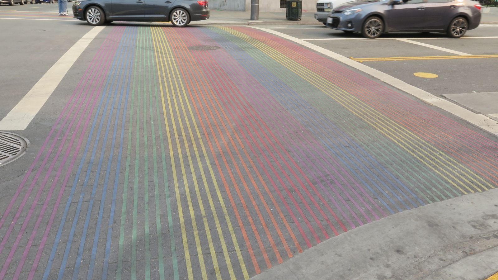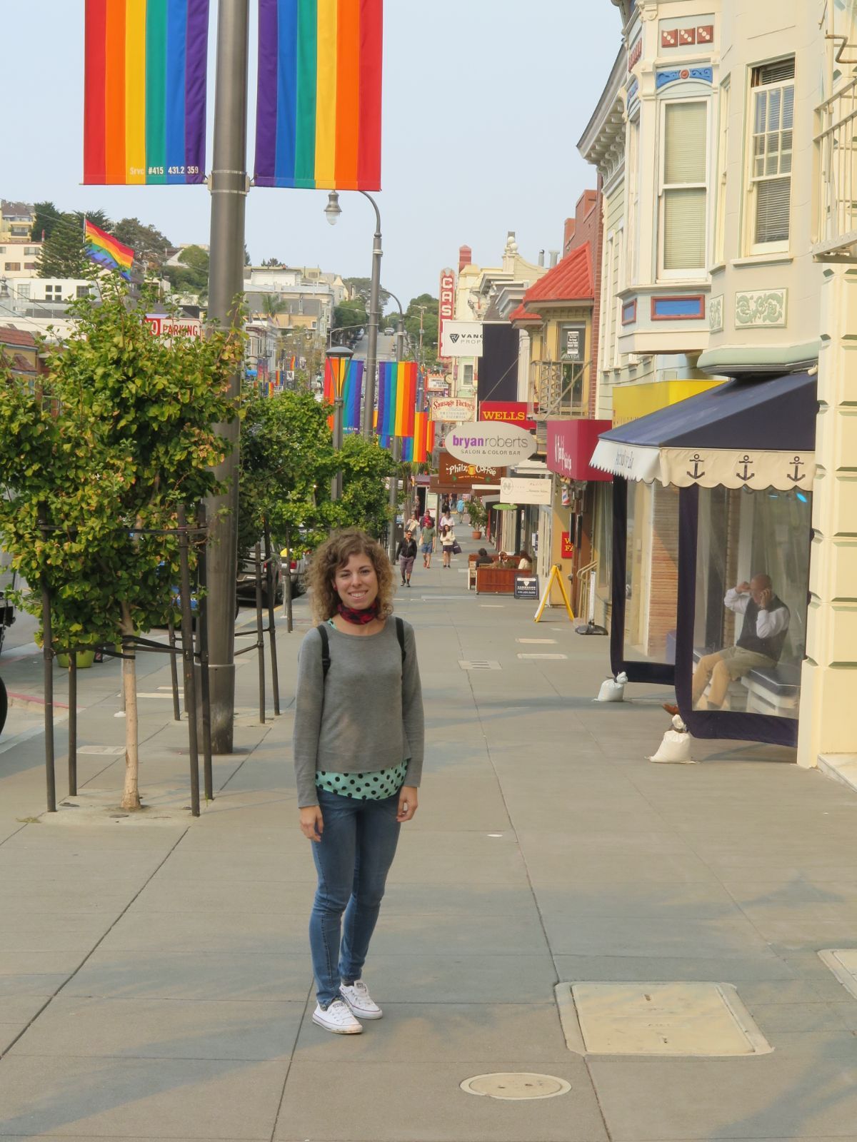 De allí nos trasladamos a otro interesante barrio: Castro. La calle principal, presidida por el Teatro Castro y una gran bandera multicolor, es un constante ir y venir de personas variopintas, muchas de ellas con vestimentas escuetas y atrevidas. Los pasos de cebra, también multicolor, son súper curiosos.
