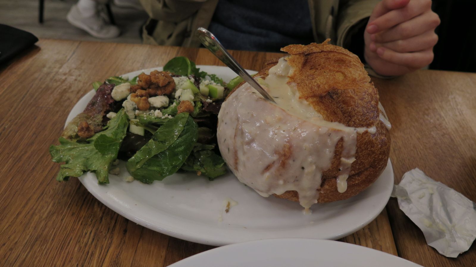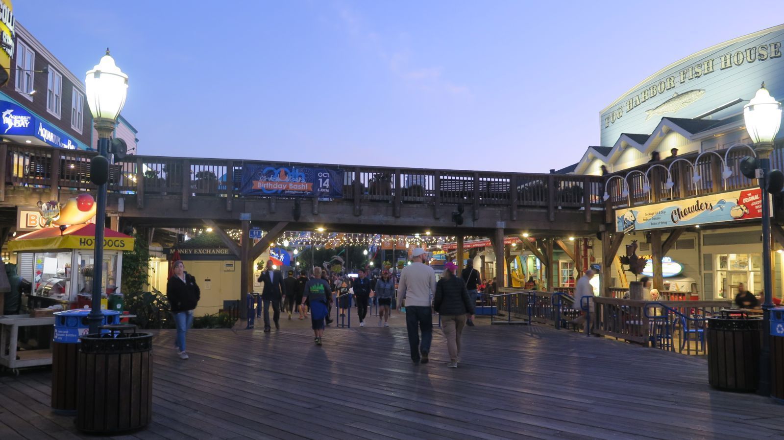 Regresamos a la ciudad y paseamos por el cercano Pier 39, muy animado a última hora de la tarde. Mientras se pone el sol recorremos todo el muelle, y entramos a cenar en uno de sus múltiples restaurantes. Evidentemente, probamos la deliciosa sopa de almejas (servida en pan) y cangrejo rebozado.