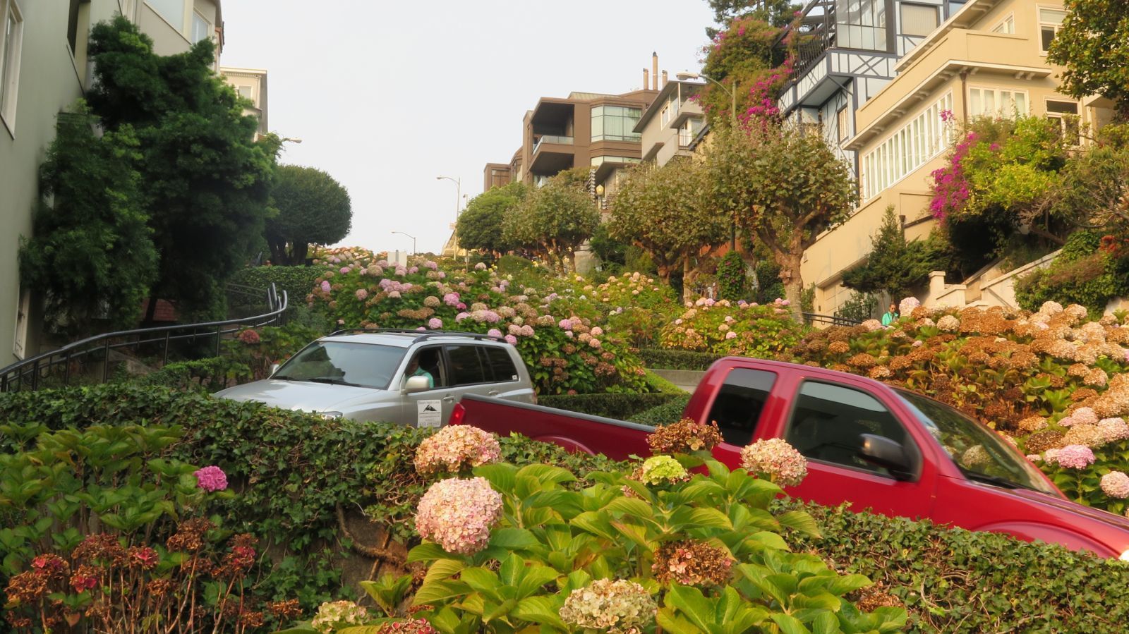 Nos levantamos temprano para intentar exprimir el día al máximo. Nuestro primer destino es la zona más revirada de Lombard Street, decorada con gran cantidad de flores. Subimos a su parte superior, mientras vemos cómo los coches fuerzan su dirección para poder adaptarse a las curvas de la calle. Curioso sí, pero nada excepcional.