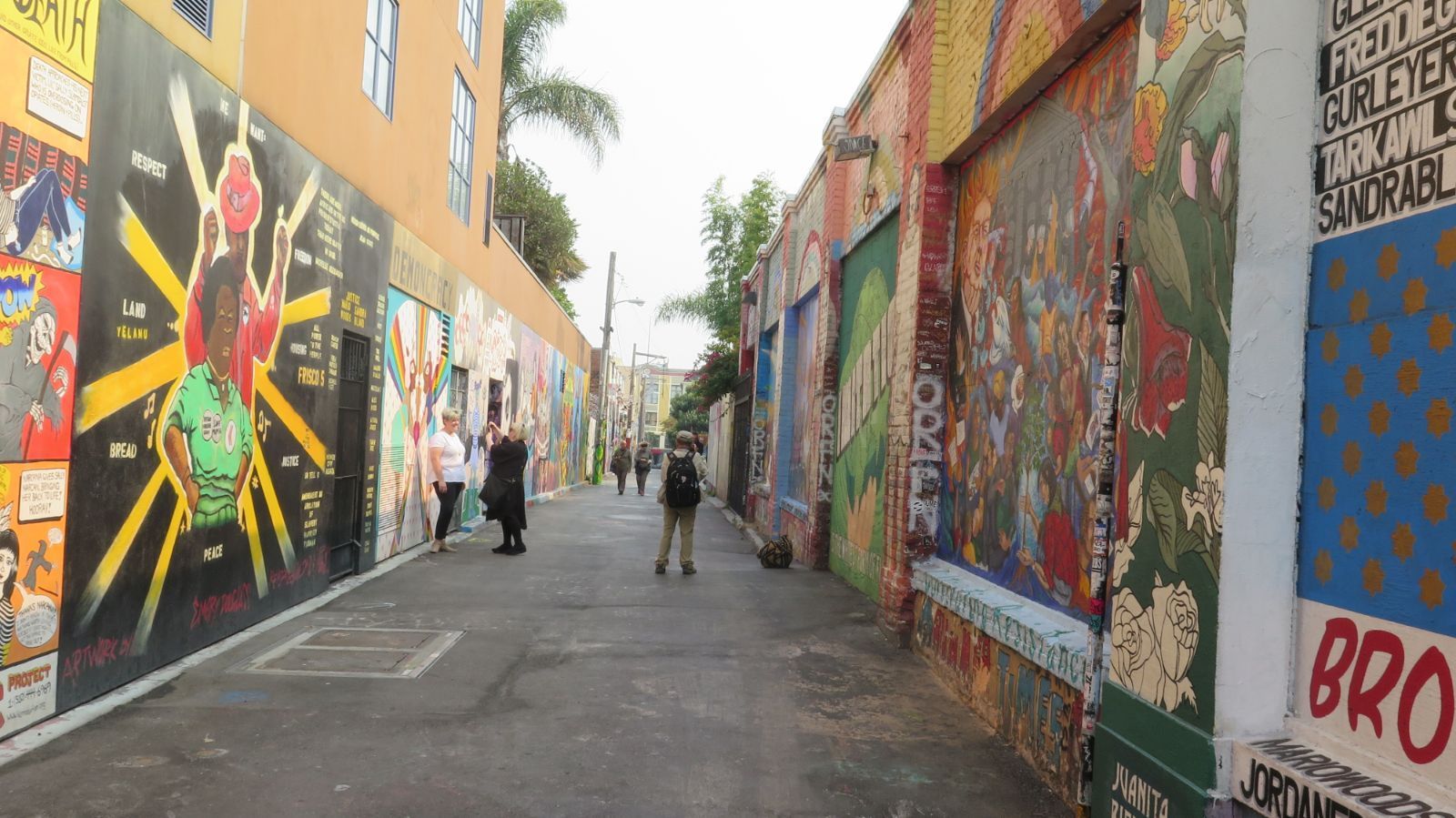 Paseamos brevemente por el barrio, en el que destacan los murales del callejón Clarion Alley, situado entre las calles 17th y 18th y Valencia Street. Aunque hay murales por todo el barrio, es quizá en este callejón donde el arte al aire libre cobra su mayor esplendor. A pesar de ser un lugar turístico, es fácil encontrar en la zona personas sin hogar y gente consumiendo drogas; en nuestro caso no tuvimos ningún problema.