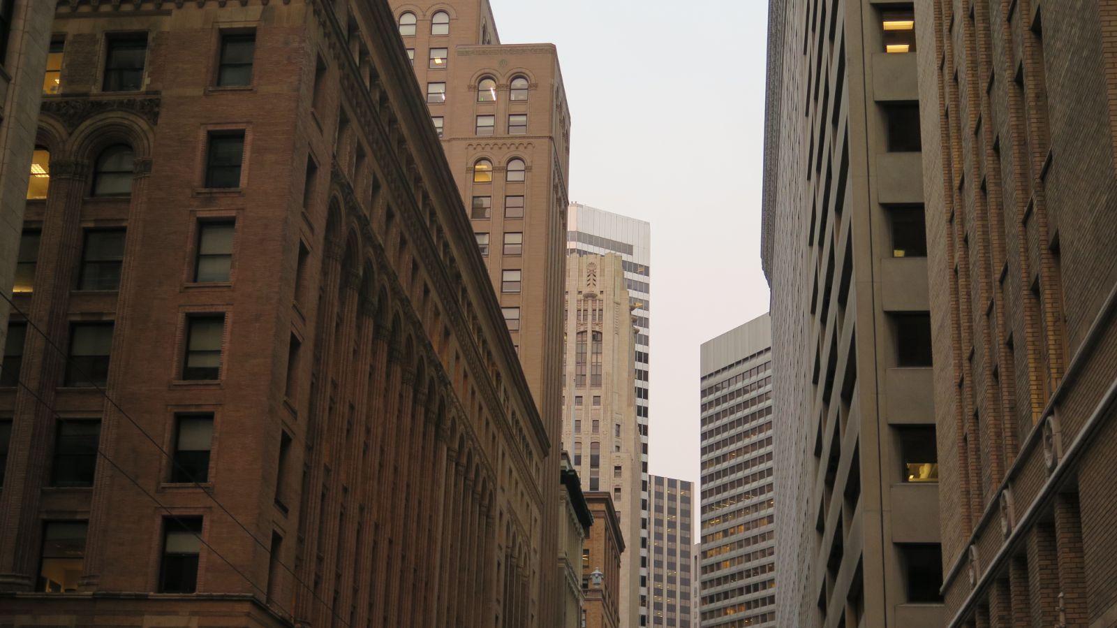 Nuestros pasos nos llevan, posteriormente, a recorrer las calles del distrito financiero, bajo imponentes edificios de hormigón y cristal. Nuestro caminar pausado y sin rumbo fijo difiere del andar decidido y estresado de la marabunta trajeada; hora punta de salida del trabajo.