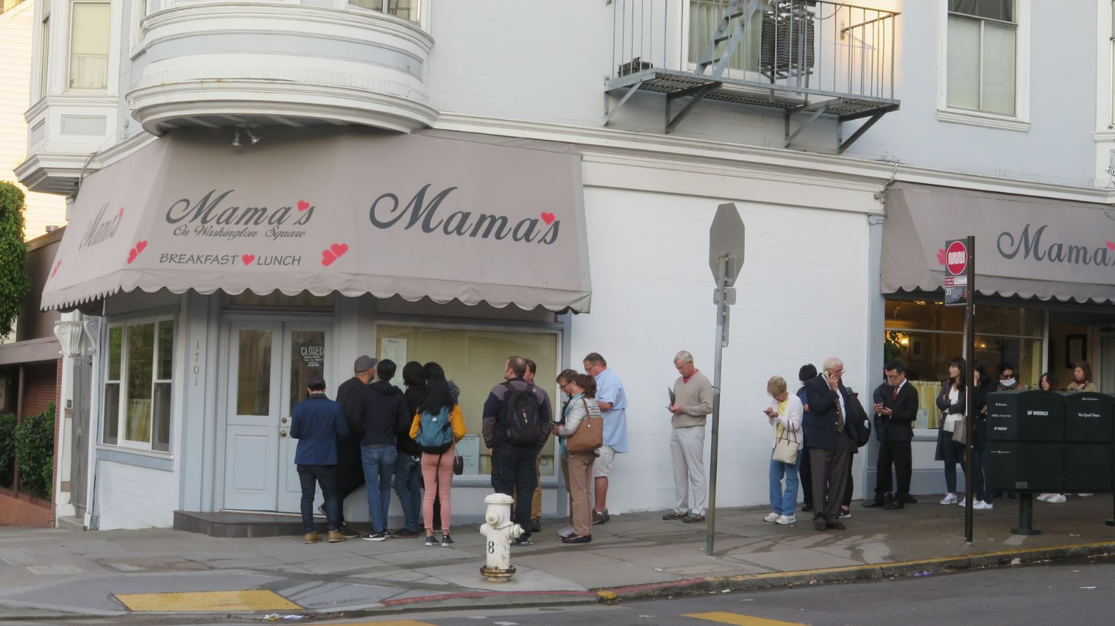 Otro día en el que toca madrugar, y esta vez por una golosa razón. Casi con las legañas en los ojos nos desplazamos al cruce entre las calles Stockton y Filbert, en una de las esquinas de Washington Square. ¿El motivo? Desayunar los populares huevos Benedict en Mama’s, un clásico de los desayunos abundantes en la ciudad. Llegamos antes de su apertura, a las ocho de la mañana, y tenemos que hacer algo de cola para entrar. La espera, sin embargo, merece la pena y tanto los vegetarian benedicts como el sandwich Montecristo que elegimos son extraordinarios.