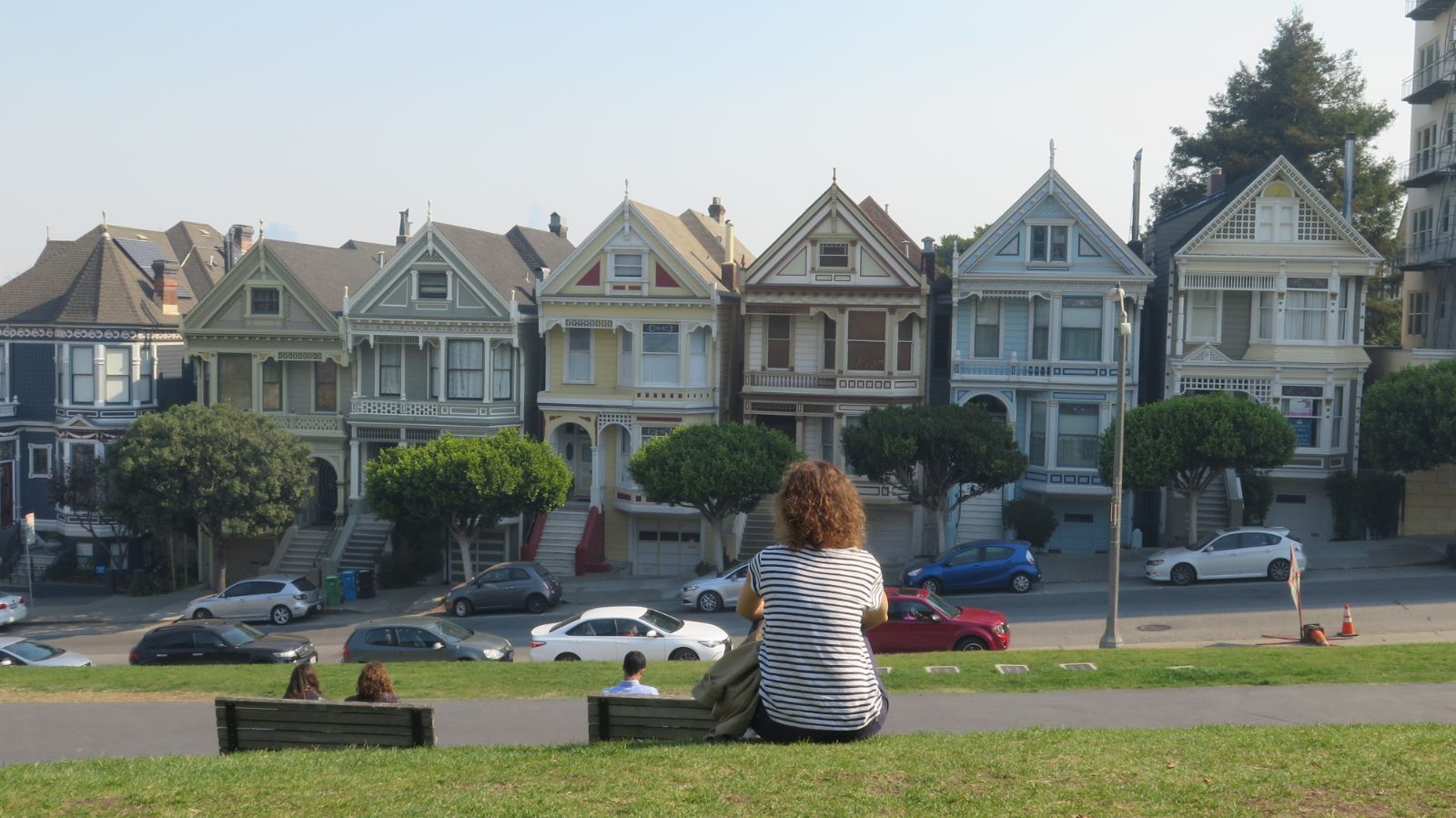 En primer lugar nos dirigimos a Alamo Square, para visitar las célebres Painted Ladies. Aunque en la ciudad hay miles de casas de estilo victoriano similares, estas en concreto son sumamente fotogénicas y, al estar situadas en lo alto, tienen el magnífico skyline de la ciudad a sus espaldas. Nos sentamos un buen rato en un banco, contemplando el animado ambiente de esa mañana en el parque.
