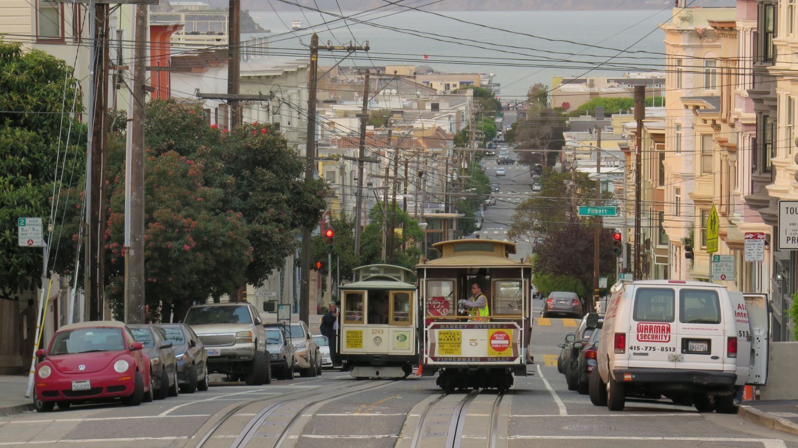 – Cable Car: los famosos tranvías son uno de los elementos más característicos de San Francisco. A pesar de no ser el medio de transporte más eficiente, cómodo ni barato, parece casi imprescindible hacer, al menos, un trayecto en uno de ellos. Existen tres líneas: California, Powell/Hyde y Powell/Mason; las dos últimas son más prácticas para visitar lugares de interés. El billete sencillo cuesta 7$, si tenemos un «Visitor Passport» o hemos contratado el City Pass®, tendremos viajes ilimitados tanto en tranvía como en autobús por un precio razonable.
