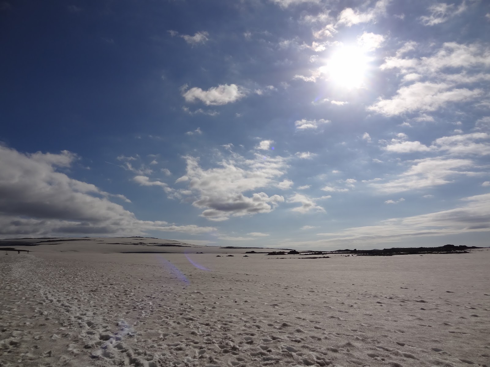 Amplia llanura nevada. Precaución aquí con la niebla. En nuestro caso, a pesar del sol, el viento helador nos hizo pasar mucho frío.