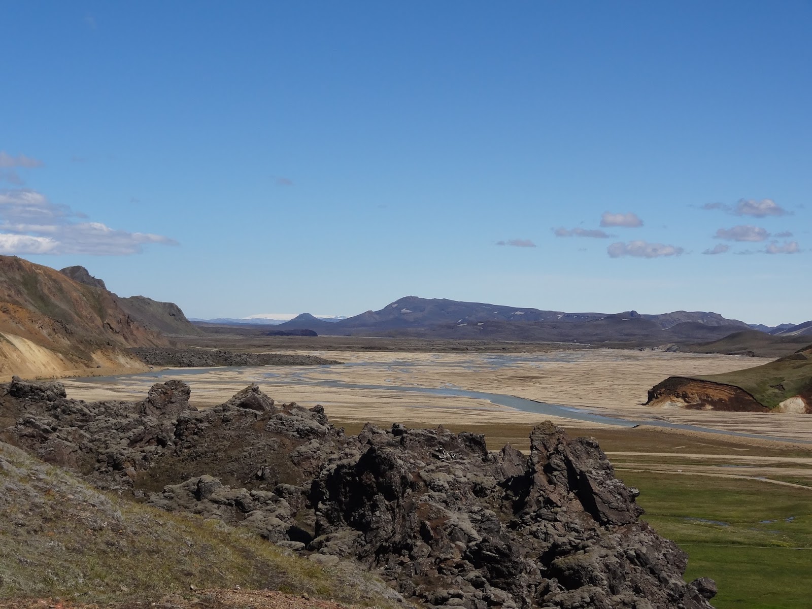 Conforme ascendemos ganamos perspectiva: abajo, las llanuras de Landmannalaugar.