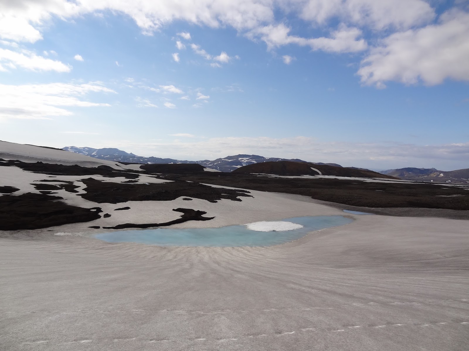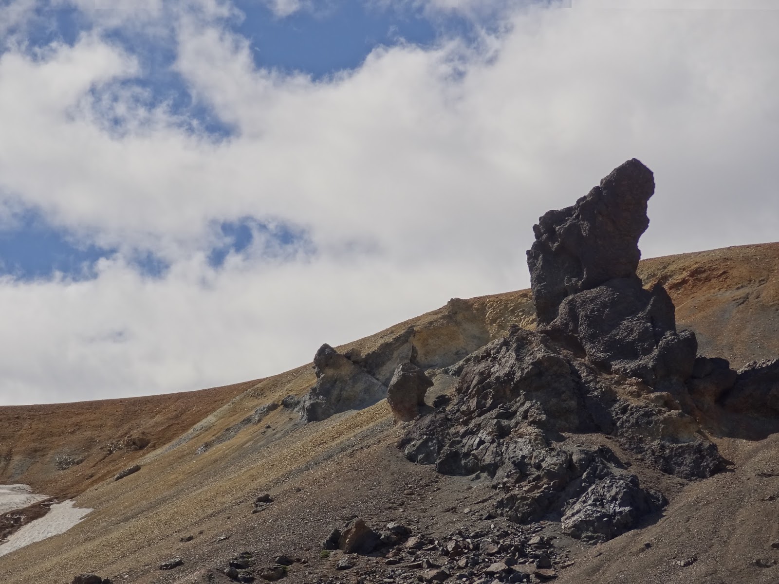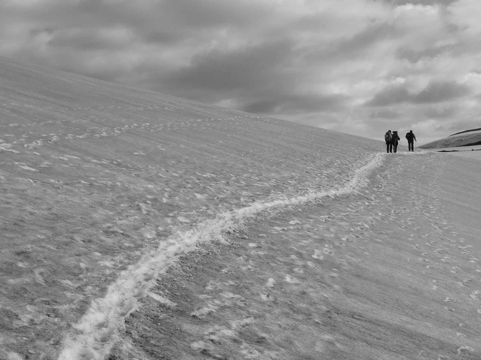 Impactados por conocer dicha historia, y haciéndonos de nuevo a la idea de lo impredecible del tiempo, continuamos el camino en dirección al refugio de Hrafntinnusker, ahora bajo un manto de nubes y una ligera (pero heladora) brisa.