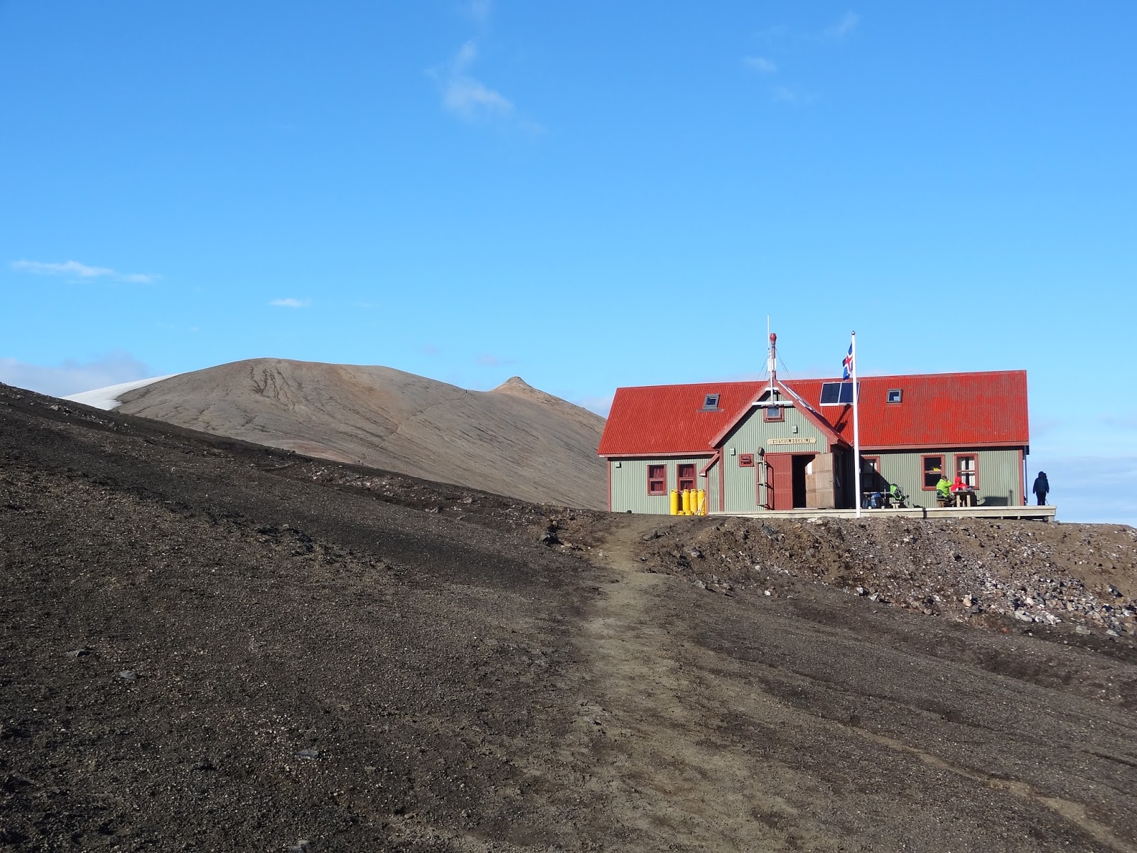 Una vez llegamos al collado, ya divisamos el refugio de Hrafntinnusker.