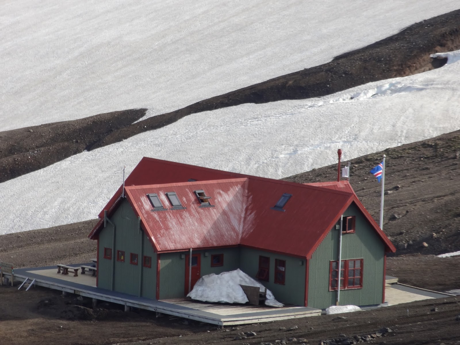 Otra vista del refugio, con el pico Söðull al fondo; al que ascenderemos.