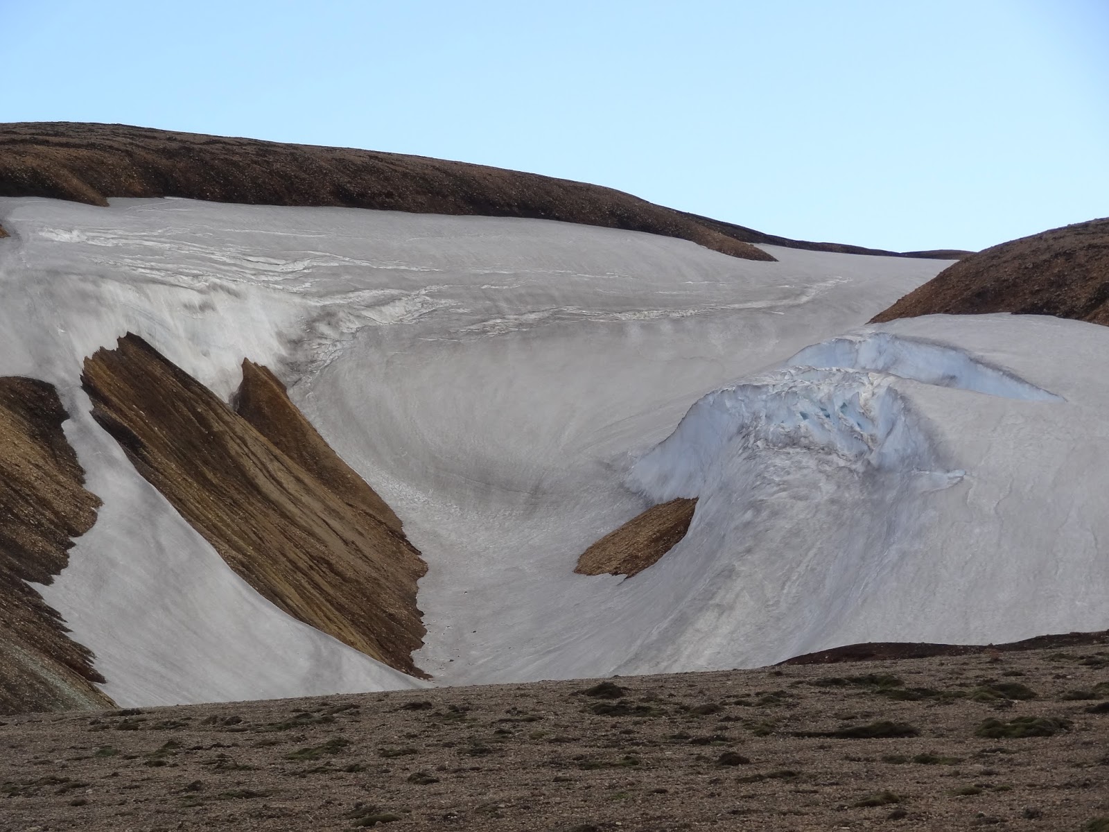 Restos de nieve en pleno mes de junio, en una zona próxima a Landmannalaugar. Parece otro planeta.
