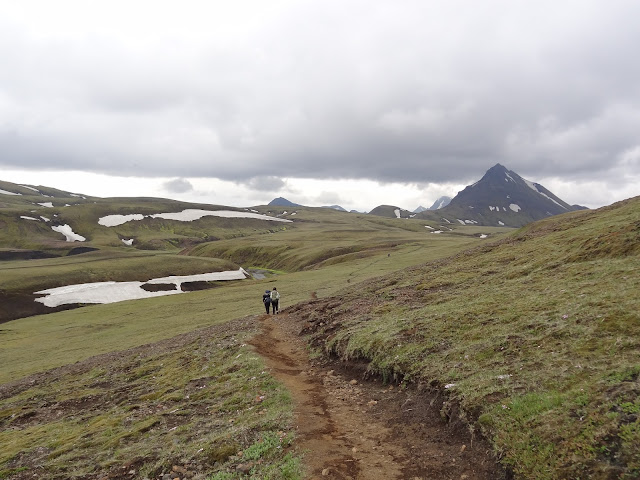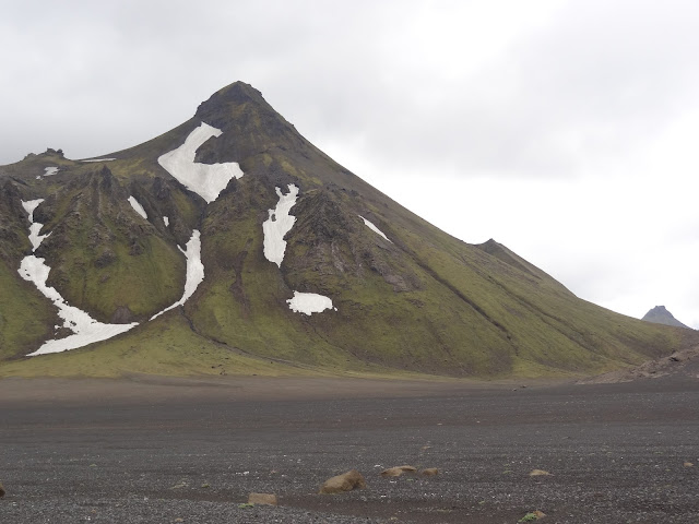 Tras cruzar el río, secarnos y volvernos a calzar las botas, reanudamos nuestro camino, por un sendero que llanea en todo momento. Hacia la derecha, en el sentido de la marcha, vemos la esbelta figura del pico Stórasúla, con sus innumerables tonos verdosos.