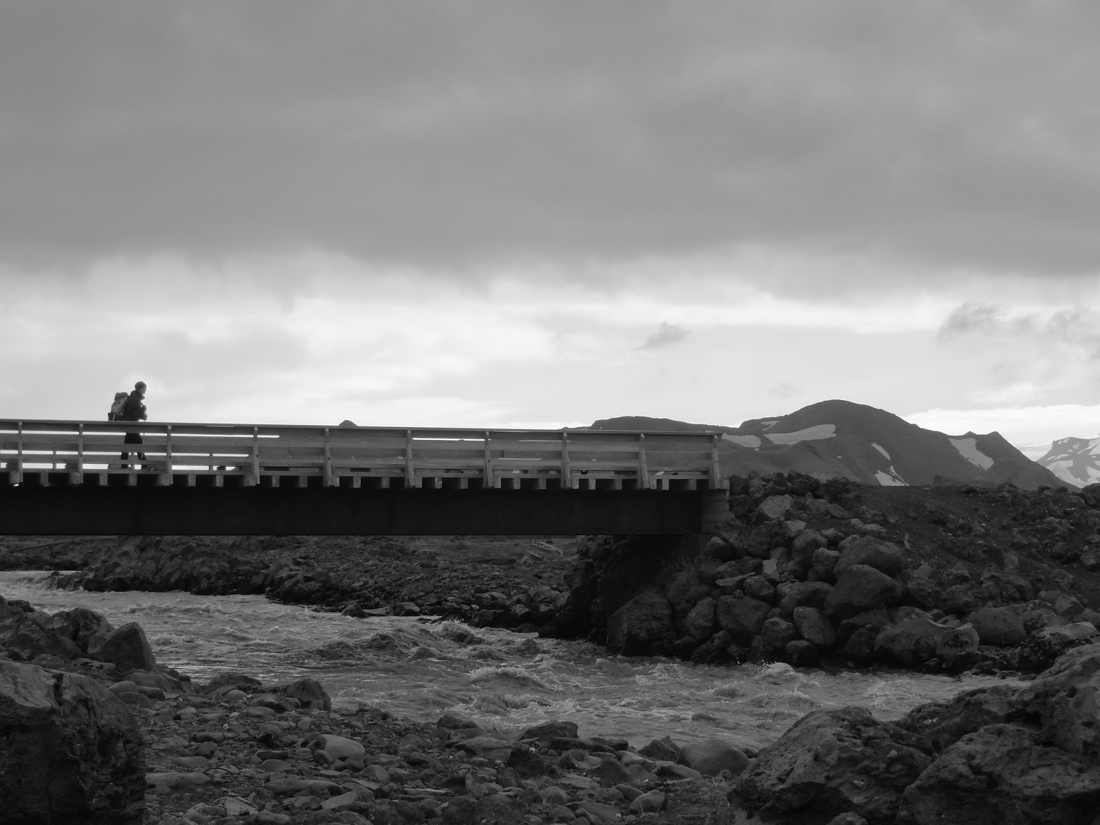 | Cruzando un puente sobre un caudaloso río islandés. |